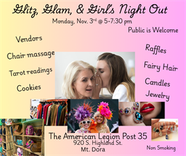 The American Legion Post 35 is happy to host this fun filled evening. This event only happens twice each year and we will have numerous vendors inside with items for sale as well as raffle items. Some of these vendors will include; chair massage, jewelry, tarot card readings, candles, cookies, purses, and fairy hair to mention just a few. The event is open to the public and we do have a non-smoking facility. Our kitchen will be open beginning at 5pm with some great food and the bartender will be serving some specialty cocktails as well. No entry fee required.